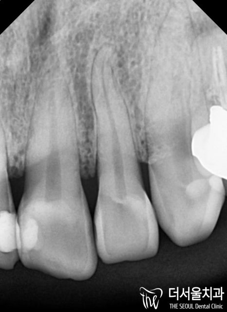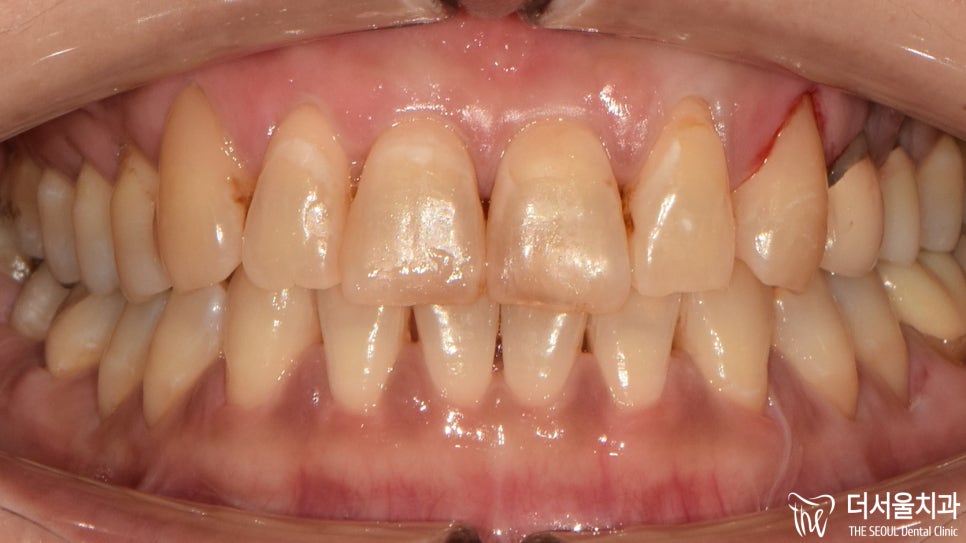 더서울에서 앞니 충치치료 과정을 끝낸 모습입니다.