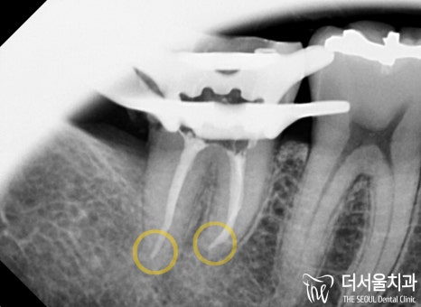 이후 본격적으로 근관치료 과정을 진행했습니다.