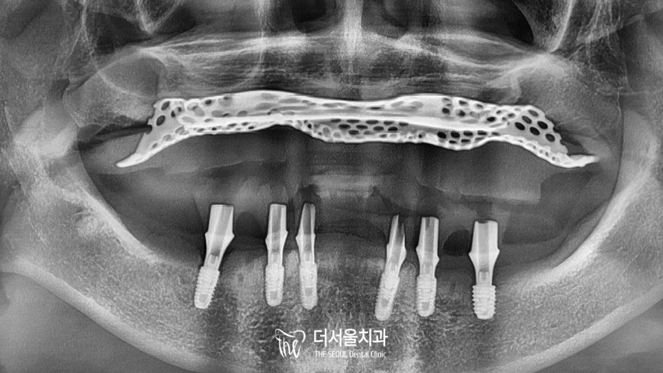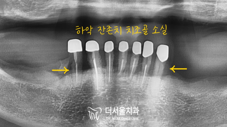 구강 내 치주 질환으로 치조골 소실이 심하게 나타나 있었는데요.
