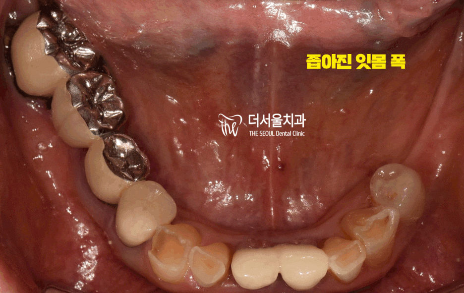 육안으로만 봐도 잇몸폭이 심하게 줄어들어 있었습니다.