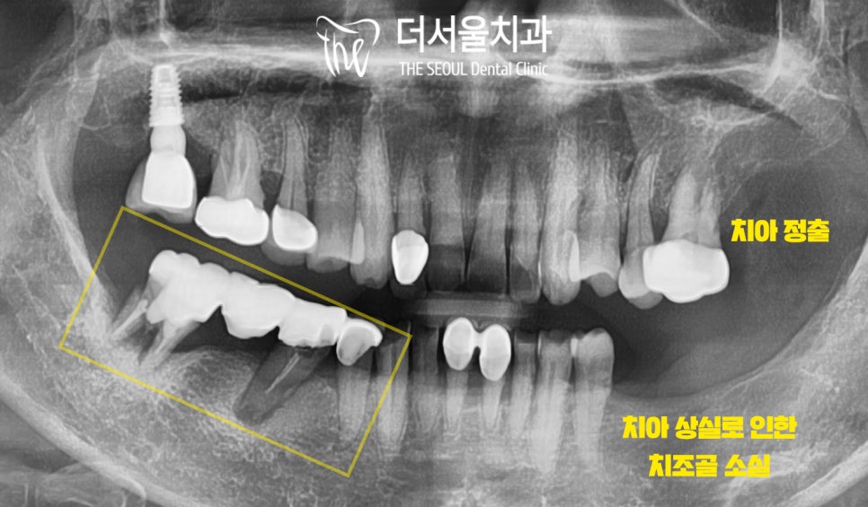 아래 치아를 뺀 지 너무 오래되어 인공치를 심는 게