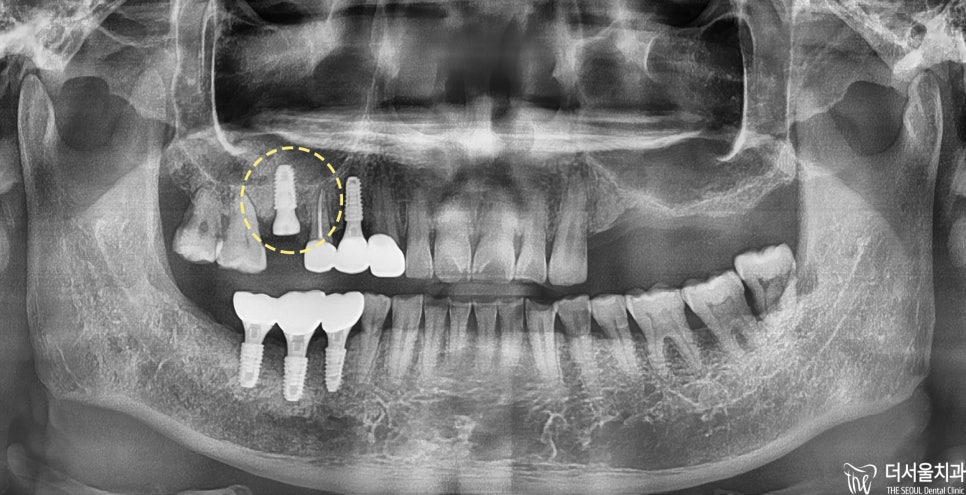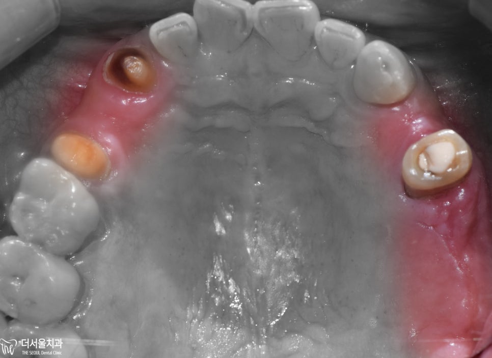 보철을 씌우지 않은 채로 방치된 모습을 보였습니다.