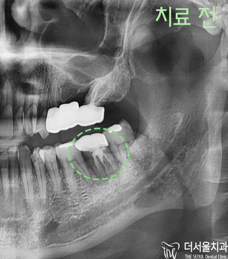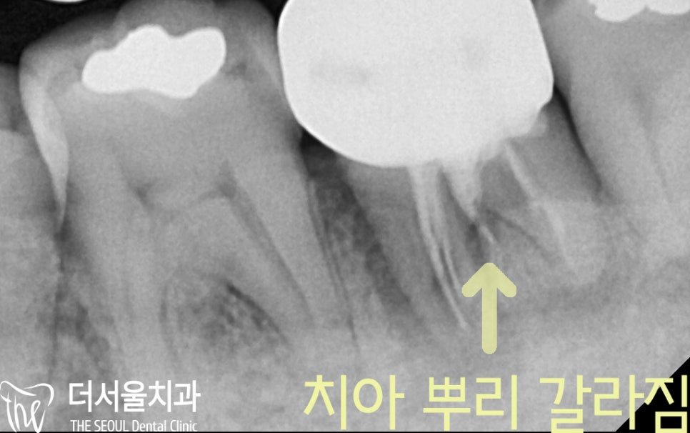 치아 뿌리가 갈라진 것을 확인해 볼 수 있었습니다.