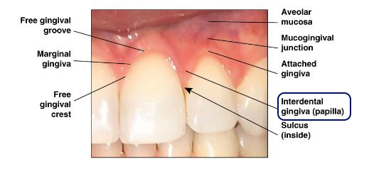 Papilla gingiva라 부르는 치간 유두가 중요합니다.