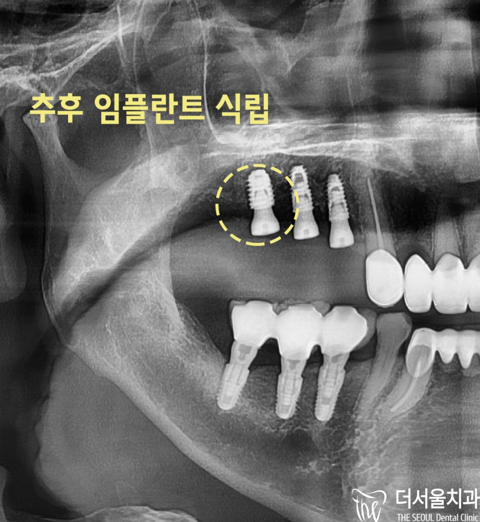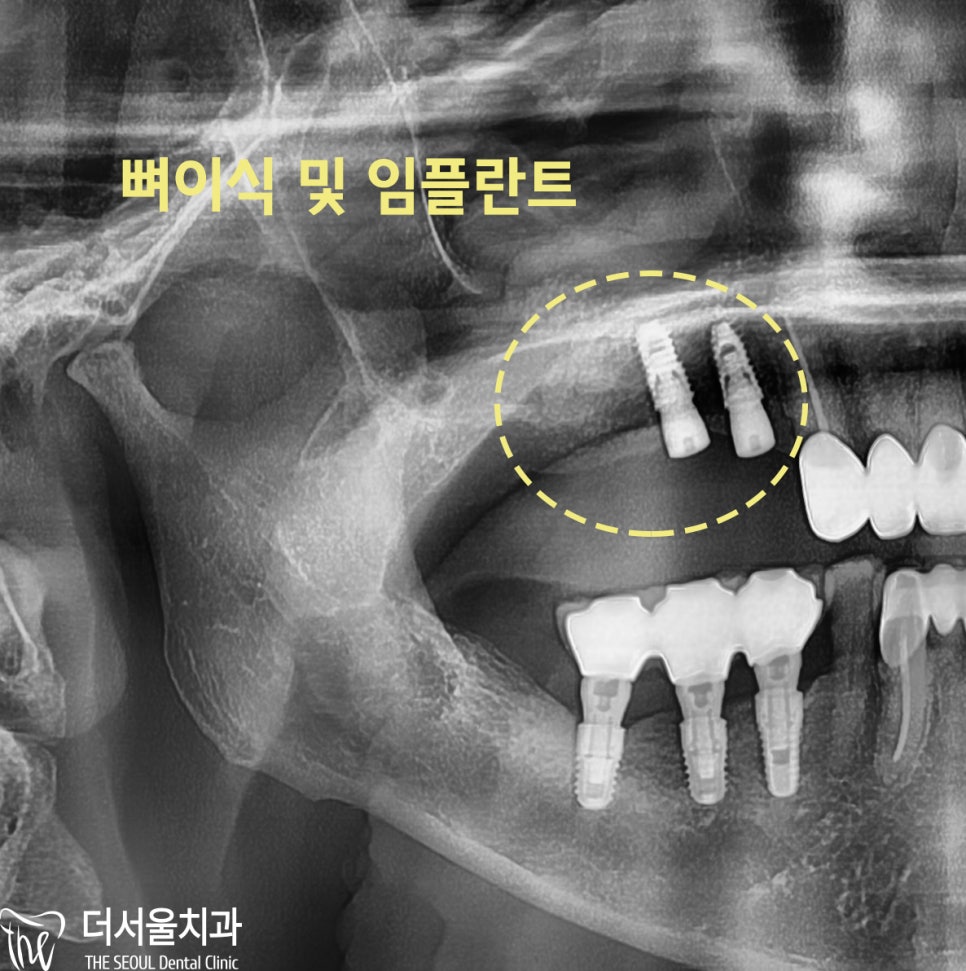 위턱 구조물인 상악동과 가까웠던 상황이었습니다.