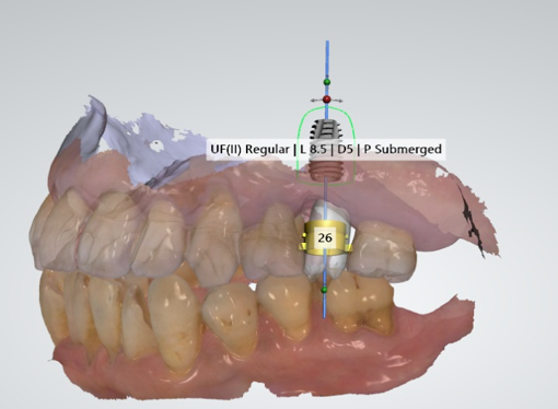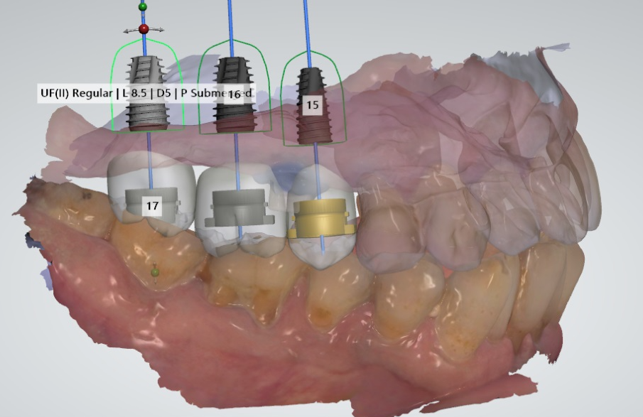 화면에서 보실 수 있는 3D 모형은 디오나비 라는 디지털임플란트 시스템 구현 화면입니다.
