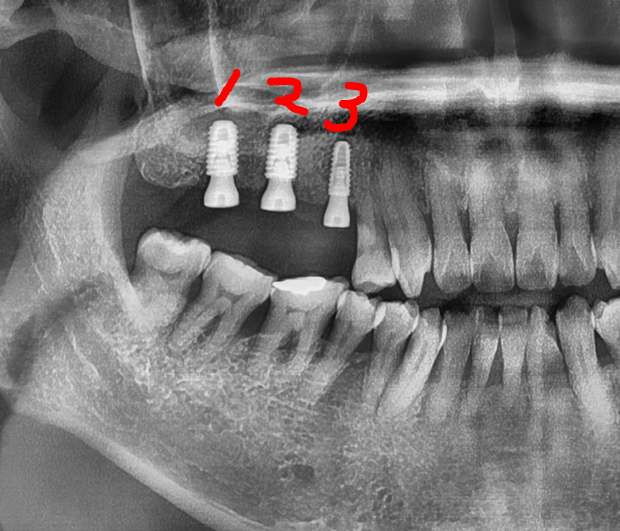 근데 문제는, 남아있는 치조골의 양입니다. 뼈가 이미 많이 얇아진 상태라서