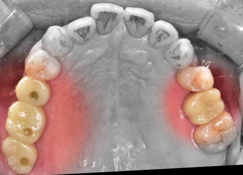 양측으로 다 4개의 임플란트를 심었고, 여기에 상악동 거상술 및 뼈이식에 따라서