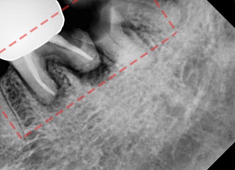 뿌리 끝에 염증(apical lesion)이 크기 때문에