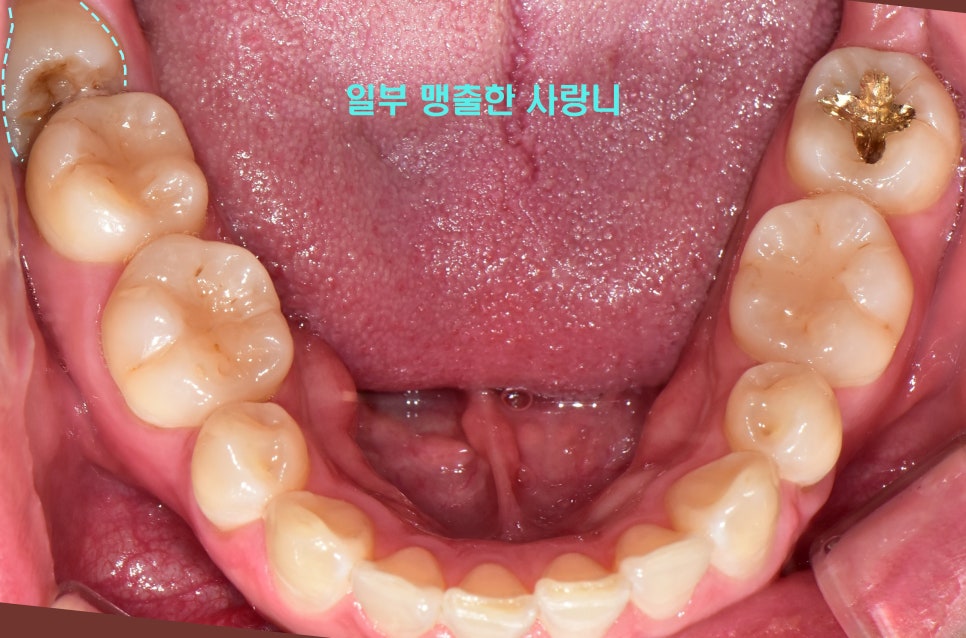 나머지 절반은 잇몸 속으로 덮여 있었습니다.