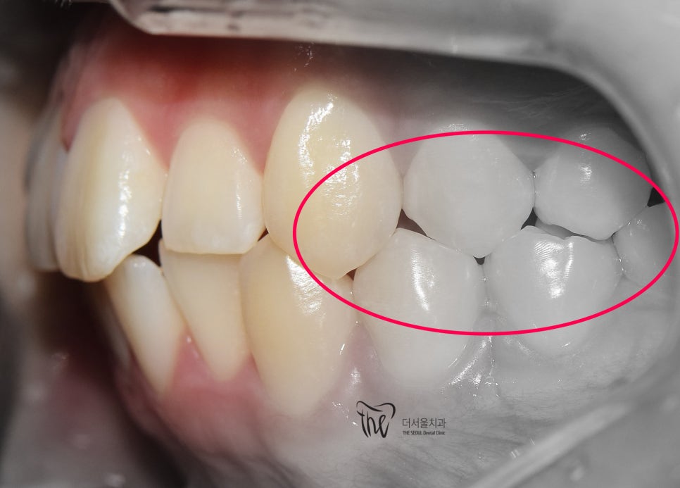 부정교합을 띄고 있는 것을 볼 수 있습니다.