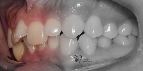 측면에서 봤을 땐, 앞니들의 뻐드러짐과