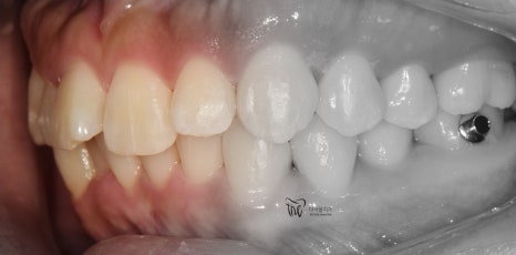 부정교합 2급, 임플란트 수술 및 과개교합 개선 / 투명교정 인비절라인 장치 활용