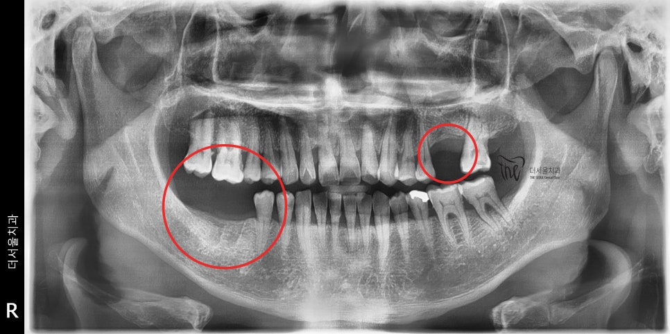 크게 2군데에서 어금니 빠짐 이 확인이 됩니다.