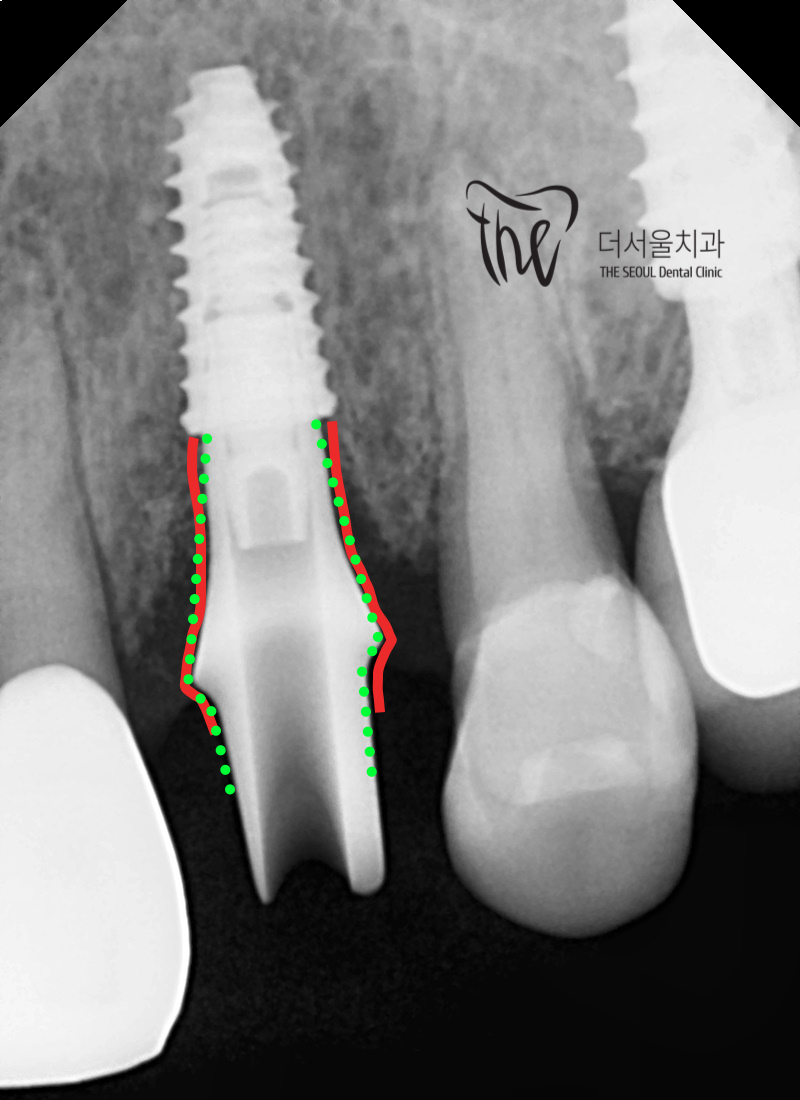잇몸의 높이까지 맞춘건데 초록색 점선은