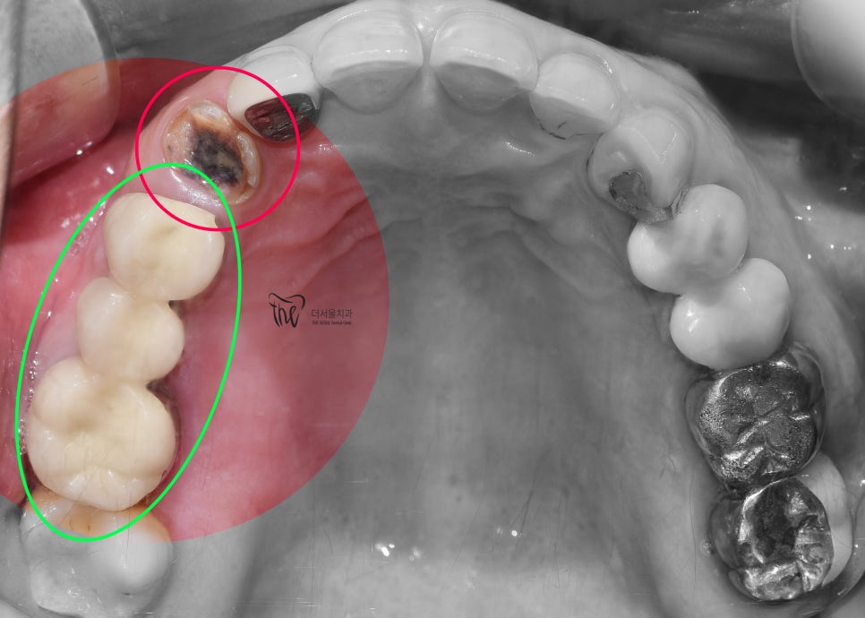 뿌리만 남아있는 채 더서울치과에 오셨었습니다.