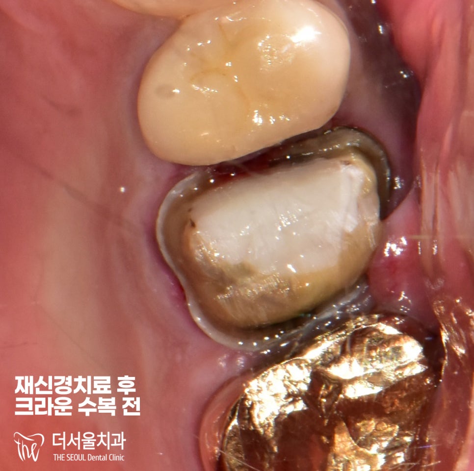 서둘러 재신경치료 후 크라운 수복으로