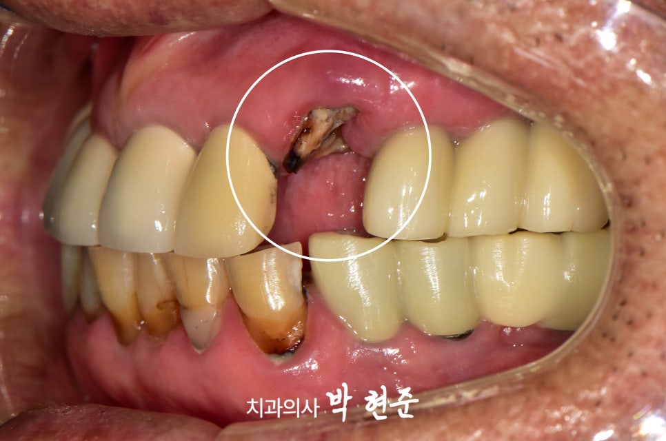 전치부 송곳니 부러짐, 모란역치과 에서 남아있는 뿌리 치근 발치 후 서지컬 가이드(surgical guide) 임플란트 과정 설명
