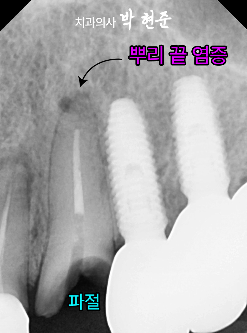 뿌리 끝 염증까지 진행되고 있는 것을 알 수 있습니다.