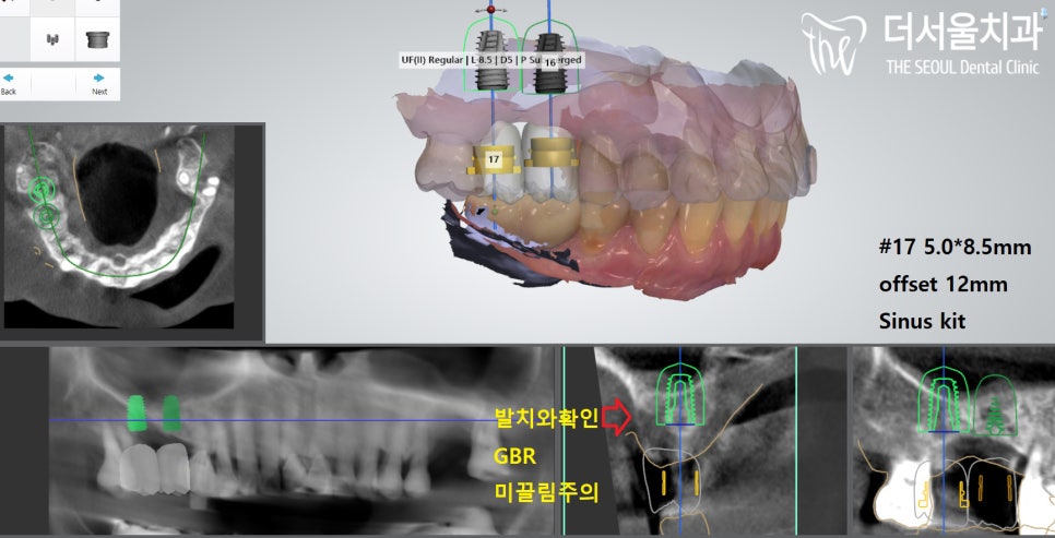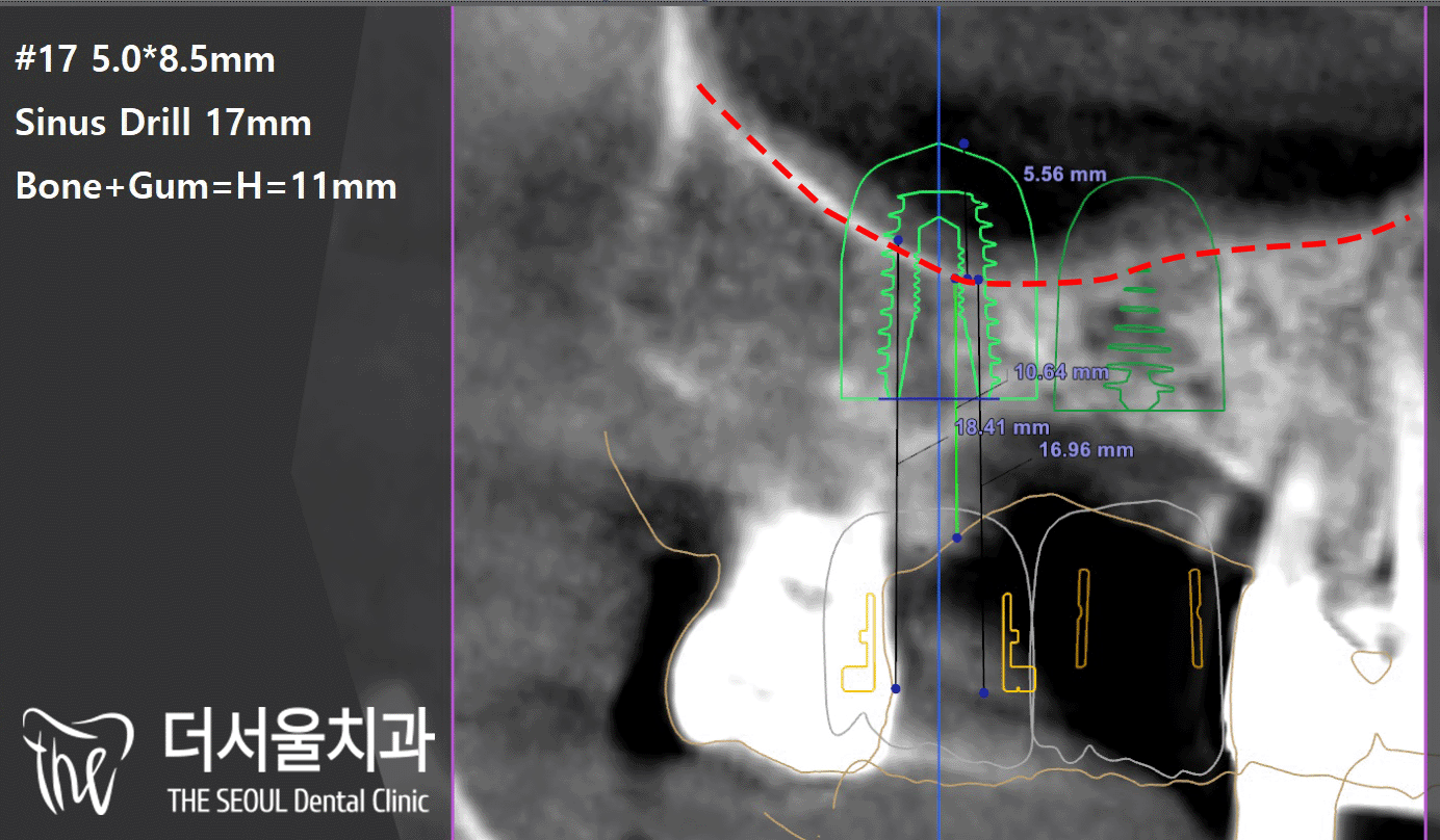 상악동과의 거리를 유념하여 심어야 되기에,​