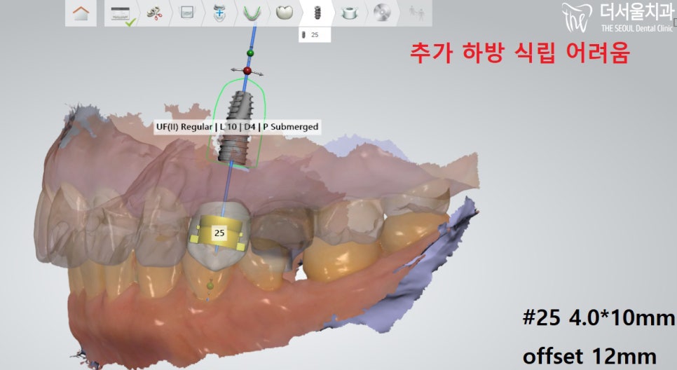 가이드를 이용하여 수진동 임플란트를 심은 결과입니다.