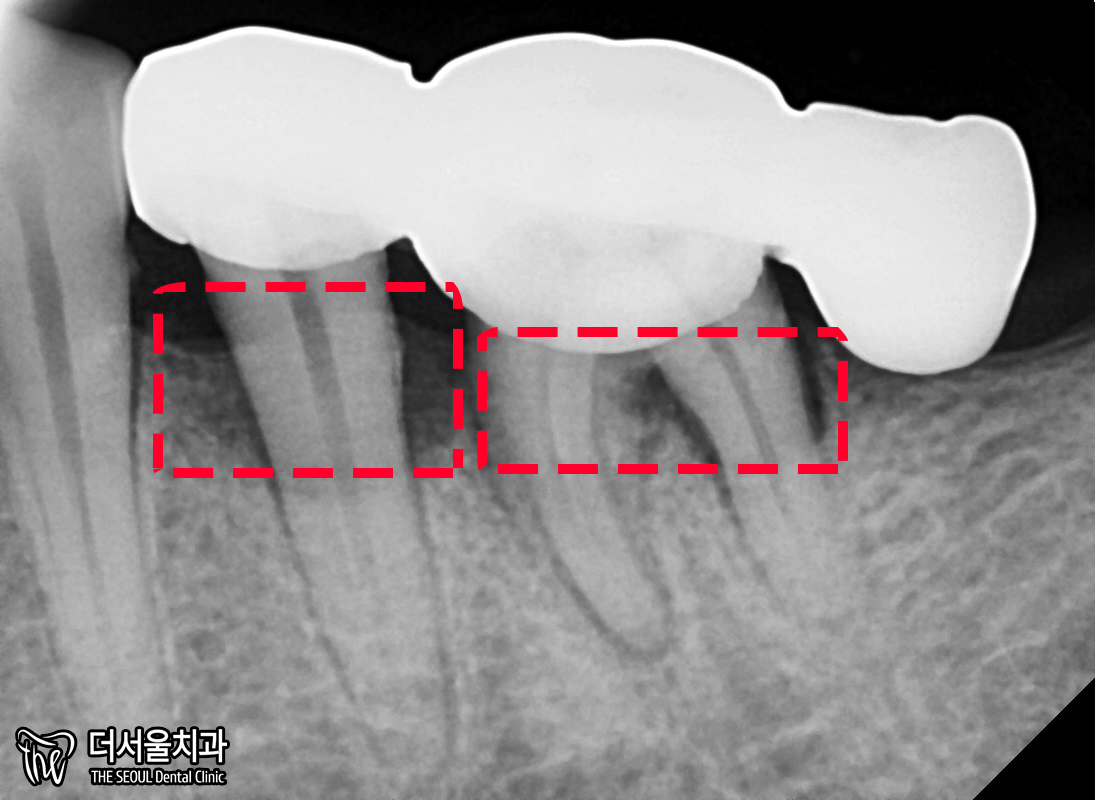 아래 왼쪽 어금니 부분에도 마찬가집니다.