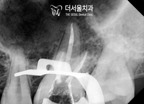 위쪽도 교정 전 신경치료 를 도왔습니다.