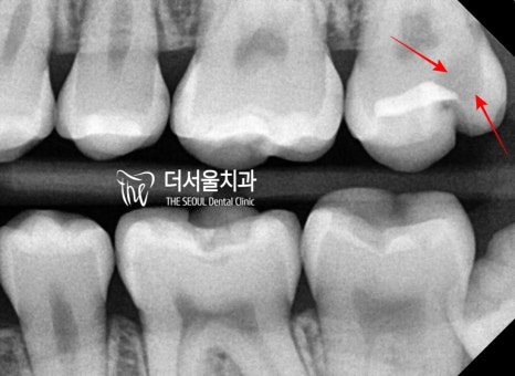 이곳은, 인레이 하방으로 2차 우식이